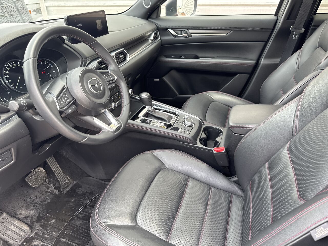 Come test drive this CX-5 GS Sport Design, featuring black leather seats with red stitching and a sunroof. Equipped with a heated steering wheel, heated and ventilated front seats, power-adjustable front seats, backup camera, Apple CarPlay/Android Auto, and much more!
